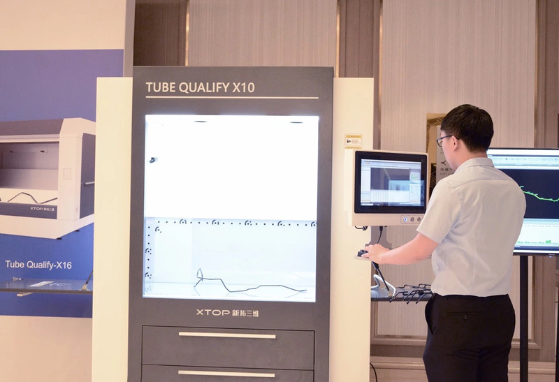 “该系统仅需2秒即可完成检测,相较传统的检具检测方式,大大提升了检测效率和精度,并可快速出具图文检测报告。”新拓三维副总经理陈军介绍,该系统不仅适应于单一的管路检测,在管路逆向、弯管机调试、非标准管检测等领域也有广泛应用前景,并可搭配机械手、上下料架、上位机控制系统等,实现高效率的自动化弯管检测。