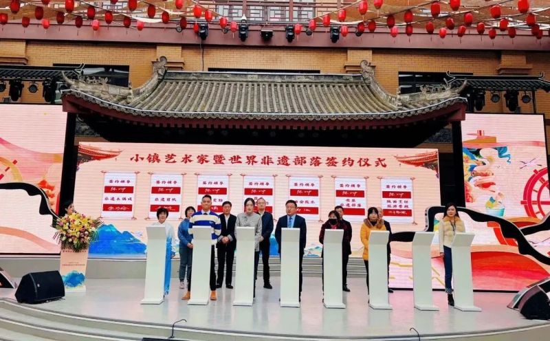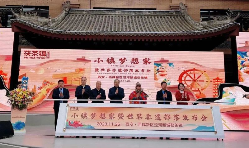 发布会上,茯茶镇“小镇梦想家”暨世界非遗部落宣布落成,将为新一代的艺术工作者提供学习、交流和成长的平台;茯茶镇集团相关负责人介绍了茯茶镇“小镇梦想家”的独特魅力和发展愿景;多个省市非遗项目亮相现场,非遗木偶戏、非遗剪纸、非遗变脸、茯茶非遗制作、长安鼓乐和世界非遗部落项目进行了签约。
