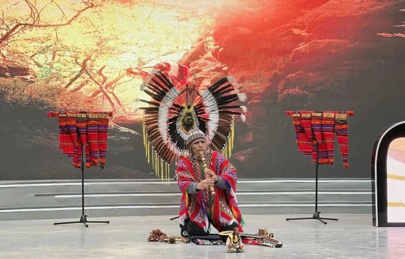 期间,陕西秦腔、陕西省非遗木偶戏、川剧变脸、长嘴壶茶艺表演、古乐演出等一系列文化底蕴浓厚的非遗展演,为大家呈现出茯茶镇独有的文化魅力。印第安音乐家亚历桑德罗作为首个签约茯茶镇·世界非遗艺术部落的非遗艺术家现场表演多个经典曲目,为现场观众带来了一场难忘的视听盛宴。