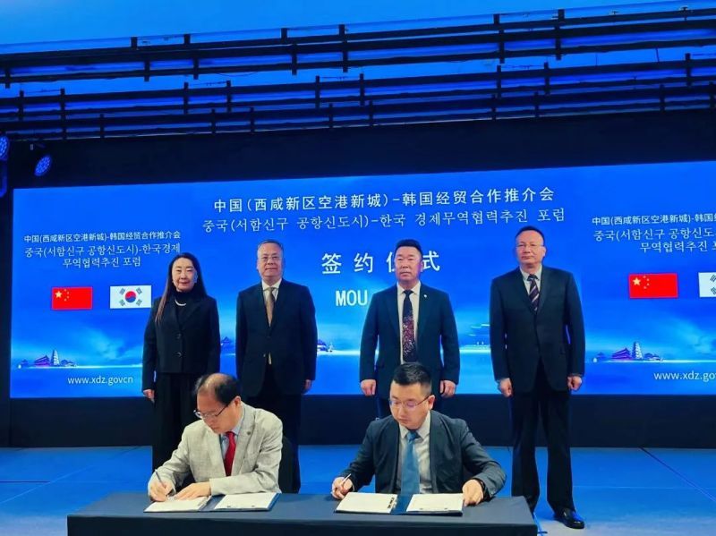15日下午,中国(西咸新区空港新城)-韩国经贸合作推介会在首尔举行,会议围绕“构建空中丝绸之路新起点、打造临空经济交流会客厅、共建国际产能合作新基地”进行主题交流,大韩航空、ZANTI-H生物科技等50余家电子信息、生物医药、国际免税城、酒店等企业负责人与会。张蔚对空港新城的区位交通、功能平台、营商环境、产业发展等进行了系统推介,㈜페트로마인 코리아、㈜지아이베큠两家企业代表介绍了各自发展情况及对外投资意向。韩国企业家纷纷表示出对空港新城的浓厚兴趣,空港新城在现场与韩中文化经济交流中心、韩中同胞联合会签订经贸合作框架协议。