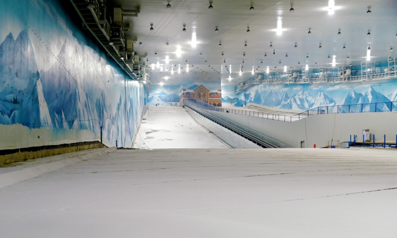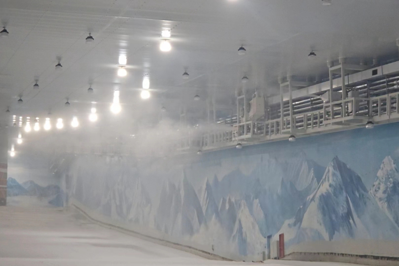 “滑雪场在5月份试运营之前,会一直将室内温度保持在-5℃左右,进行为期一个月的封闭式人工造雪。”蔡政军介绍,滑雪场采用国际先进的制冷设备和造雪技术,相较于自然降雪,人工造雪的雪质更加柔软,在相同条件下,同体积人工造雪比自然雪融化的速度更慢,性状更稳定,因此更适合滑雪爱好者运动滑行。
